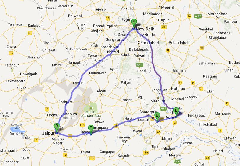 Delhi-Jaipur-Bhandarej-Fatehpur Sikri-Agra-New Delhi)