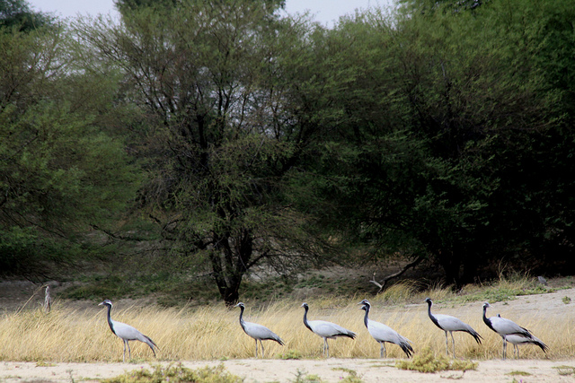 Kraniche. Blaue und grüne Bienenfresser sind häufig in Tal Chappar
